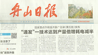 舟山日报首版报道我公司发明专利技术列入“...